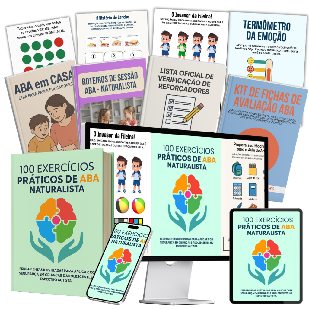 Tenha em mãos um guia completo de atividades baseadas em ABA Naturalista, prontas para aplicar em sessões clínicas, em casa ou na escola.