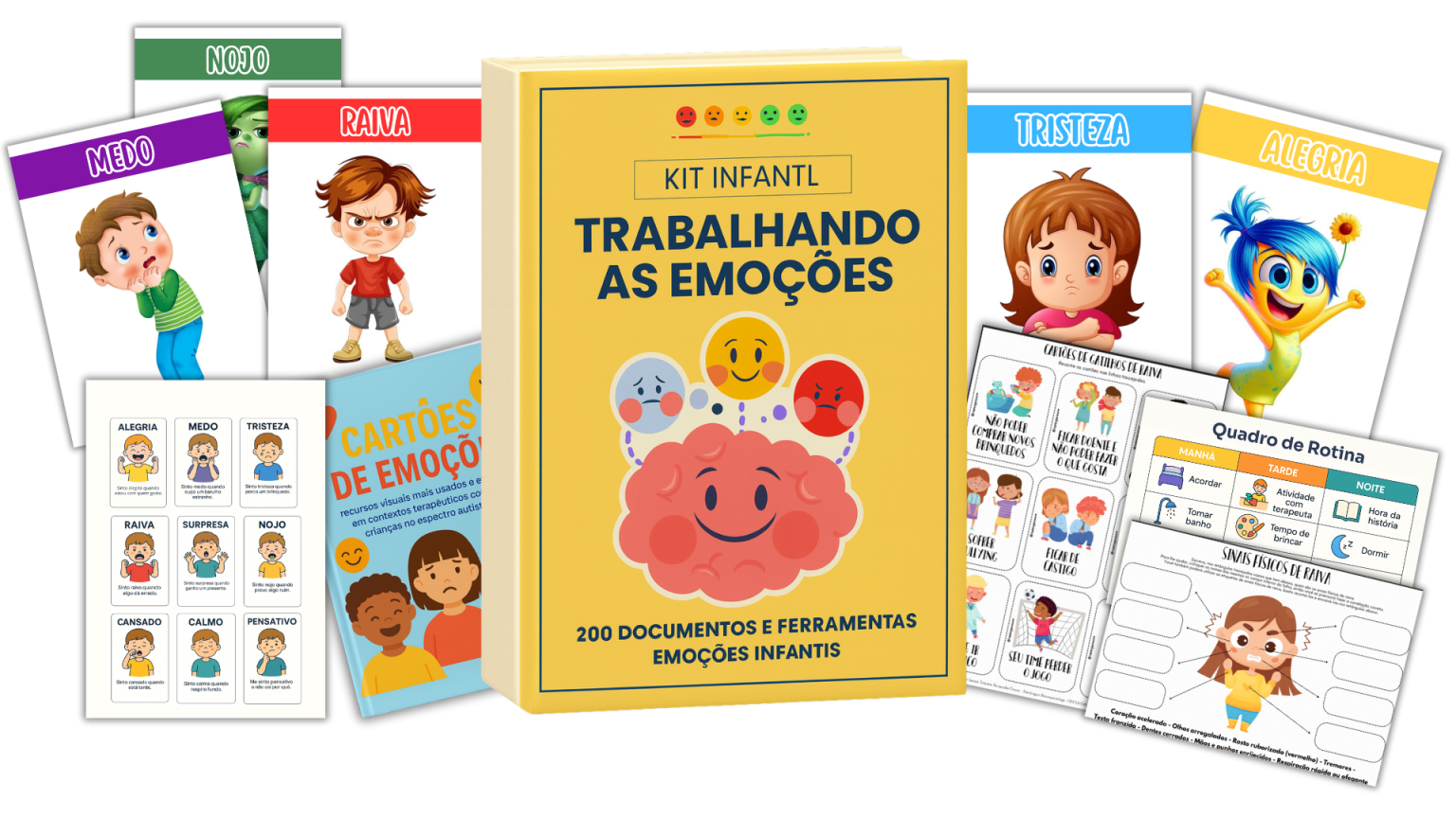 O Kit de 200 Documentos e Ferramentas emoções Infantis, oferece tudo o que você precisa para conduzir sessões lúdicas, intervenções terapêuticas e ações educativas com segurança e intencionalidade.